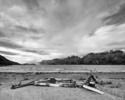 Ces deux jours de marche sont récompensés par l’arrivée à la baie, à l’Aserradero La Paciencia, ancienne ferme en ruine, témoin d’anciens espoirs probablement submergés par une réalité sous estimée. L’endroit est splendide, et il est tentant de suivre la plage pour aller admirer la cordillère Darwin qui se dresse de l’autre côté du fjord. Dans le ciel, le vent a fait le ménage et le soleil joue avec les nuages qui défilent toujours plus vite. Le panorama est incroyable, sauvage et préservé. On y resterait. Comment ne pas comprendre l’envie qui a du habiter les colons qui ont bâti cette ferme ?
